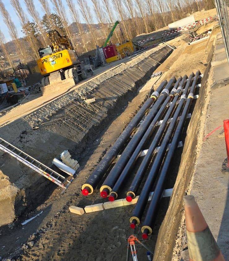Type d’intervention : installation complète de tuyauterie / canalisation pour la mise en place du chauffage à distance de la base de l’armée suisse à Payerne, près de Lausanne en Suisse