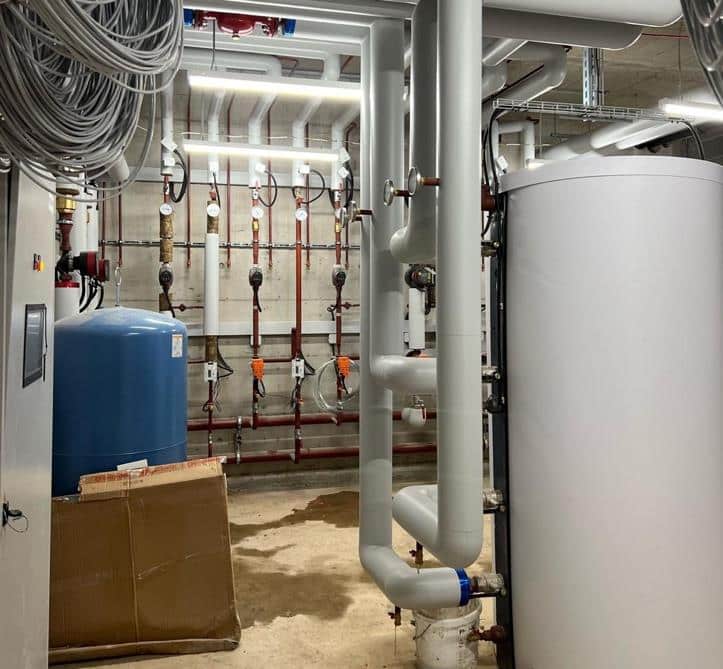 Type d’intervention : installation deux pompes à chaleur réversible gros volume : une pompe maître et une pompe asservie