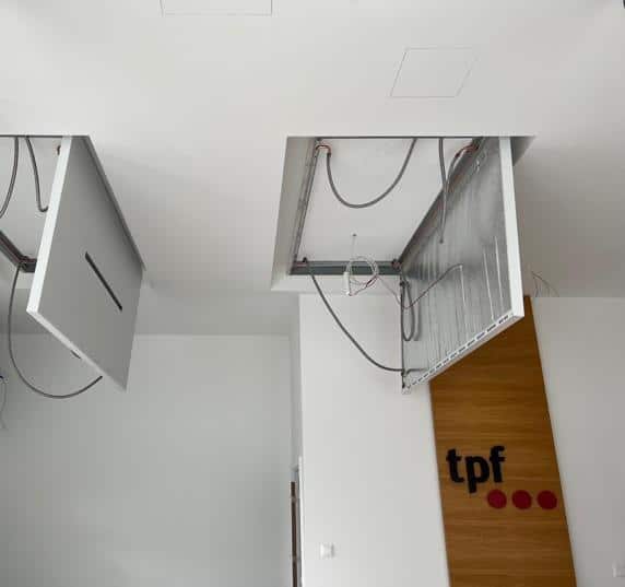 Efficacité Énergétique et Économies : en effet, le plafond chauffant fonctionne à basse température, ce qui le rend idéal pour l’association avec des pompes à chaleur (PAC). Elles sont très prisées en Suisse. Cela réduit aussi votre consommation d’énergie et évidemment vos factures de chauffage.