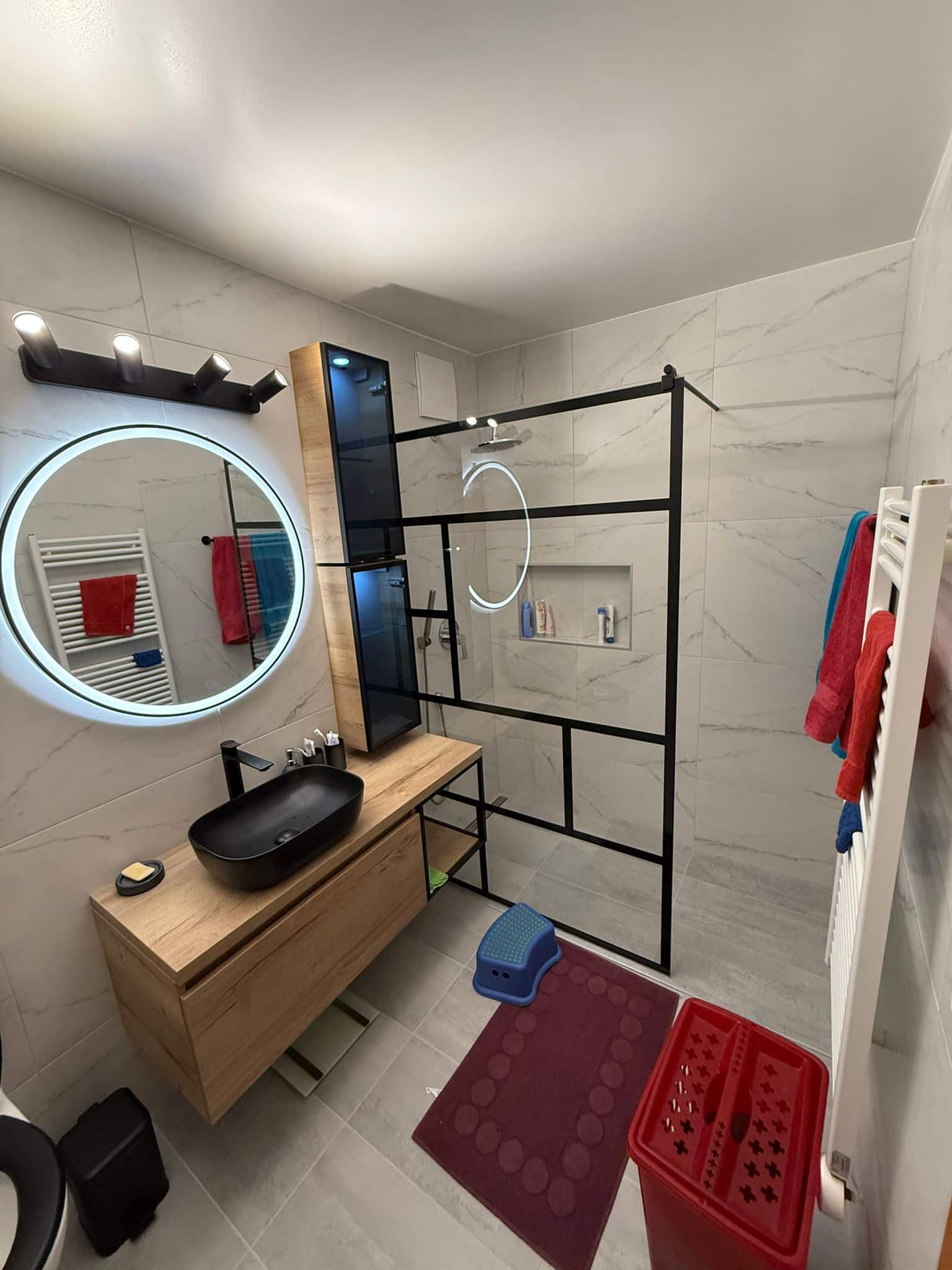 De la conception initiale à la réalisation finale, nos experts qualifiés gèrent l’intégralité de votre chantier. Nous maîtrisons chaque corps de métier : démolition sécurisée, modification de la plomberie, pose de double vasque, travaux d’électricité et éclairage LED pour une ambiance sur mesure.
